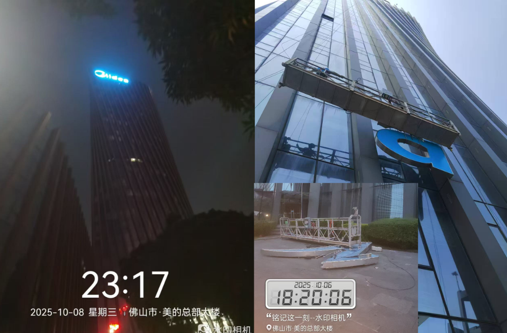 一場(chǎng)復(fù)雜的地標(biāo)工程,不僅考驗(yàn)技術(shù)實(shí)力,更考驗(yàn)協(xié)同管理能力。啟達(dá)廣告創(chuàng)新性搭建 “三方協(xié)同溝通群”,將美的業(yè)主方、吊籃設(shè)備方與自身施工方納入同一溝通平臺(tái),實(shí)現(xiàn) “一分鐘反饋、半小時(shí)解決” 的高效溝通機(jī)制:施工中遇到的尺寸微調(diào)、設(shè)備協(xié)調(diào)等問(wèn)題,群內(nèi)即時(shí)同步,各方快速響應(yīng),無(wú)需繁瑣的流程審批;小到一顆螺絲的型號(hào)確認(rèn),大到施工工序的臨時(shí)調(diào)整,都能在半小時(shí)內(nèi)達(dá)成共識(shí)并落地執(zhí)行。這種 “零延遲” 的溝通模式,徹底打破傳統(tǒng)工程中多方溝通不暢的壁壘,成為工程順利竣工的關(guān)鍵保障。?