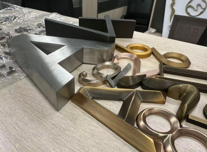 在啟達廣告的產品體系中,精工字的多樣性足以適配各類場景需求。兼具金屬質感與低調格調的拉絲不銹鋼字,是連鎖品牌的經典之選;高端大氣的黑鈦鋼字與黃鈦金字,能瞬間提升企業招牌的檔次;復古風盛行的當下,仿古銅字、紫銅字成為文創空間與中式門店的首選;而不銹鋼背打光字則憑借夜間發光的特性,讓招牌在夜色中依舊清晰醒目。此外,玫瑰金字、黃銅色不銹鋼字、拉絲鈦金字等各類精工不銹鋼招牌字,以及立體感十足的精工立體字,都能根據品牌VI系統精準定制,讓招牌字真正成為品牌形象的延伸。