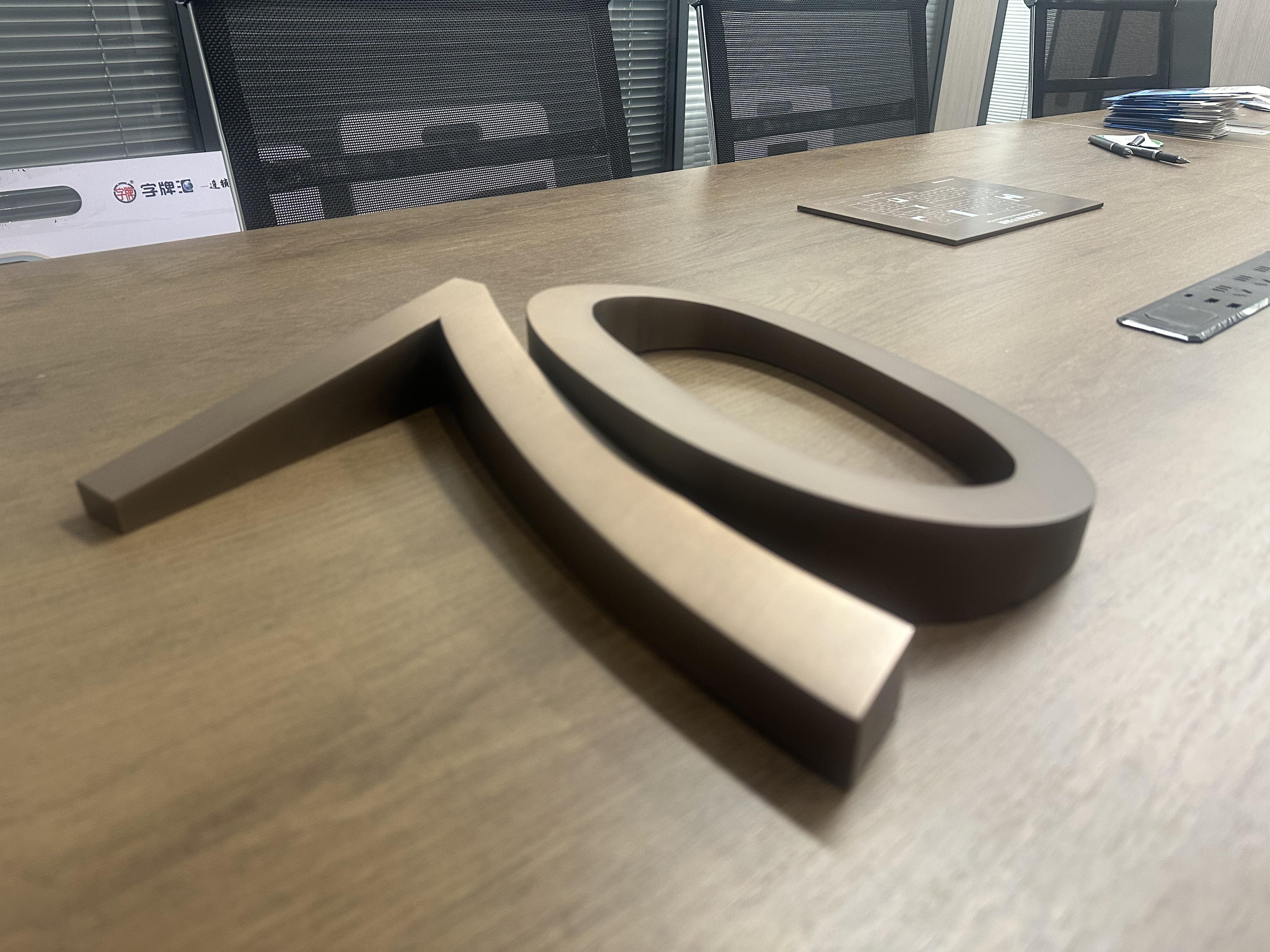 工藝水準(zhǔn):每款精工字需經(jīng)歷電腦排版設(shè)計(jì)、數(shù)控切割成型、氬弧精密焊接等6大核心工序,單字制作耗時(shí)最長(zhǎng)達(dá)48小時(shí)。通過(guò)三維立體成型技術(shù),字身厚度可做到 1-10cm 任意定制。